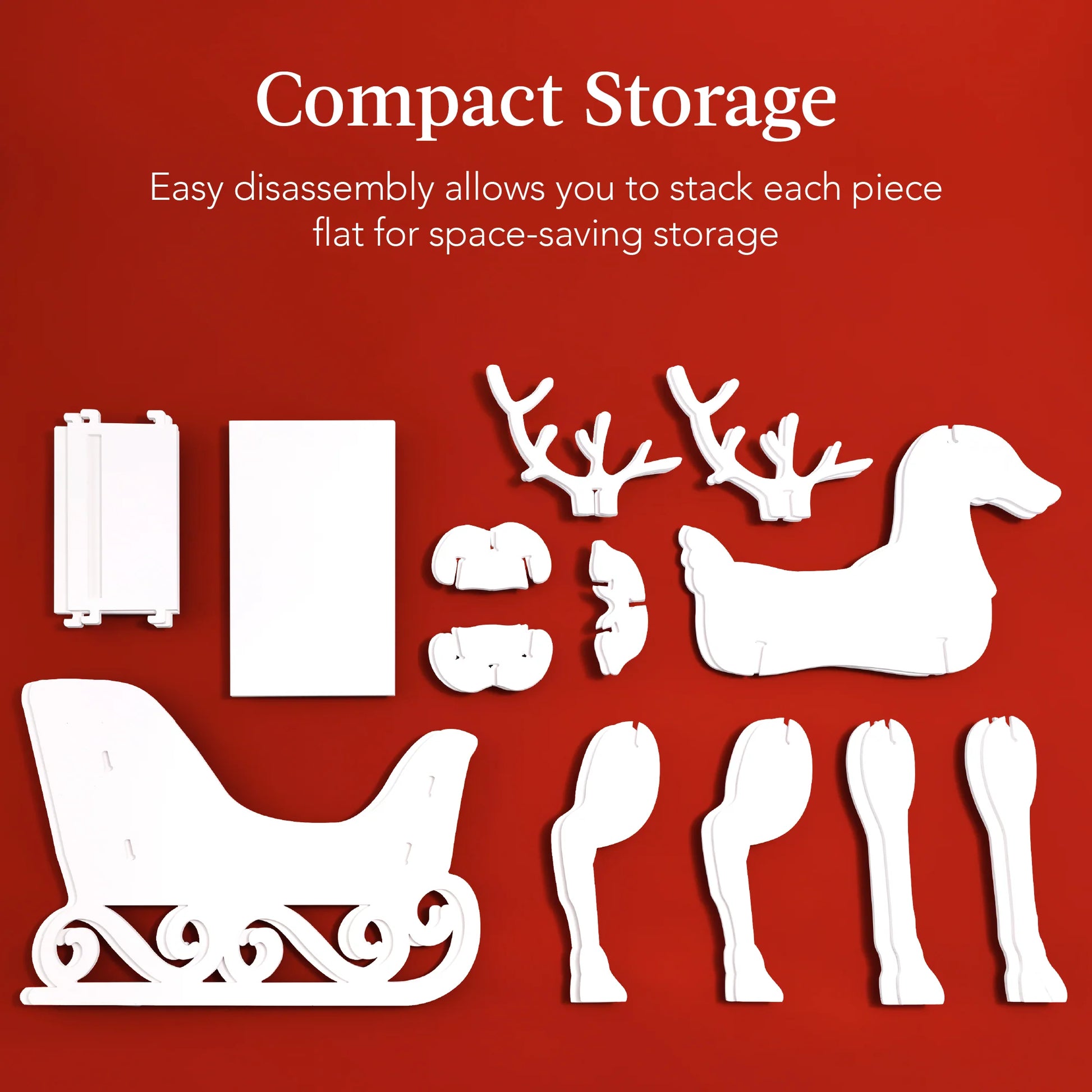 - 3-PIECE SET: Decorate for the season with stunning silhouettes of Santa's sleigh and a pair of reindeer that stand approximately 4 feet tall